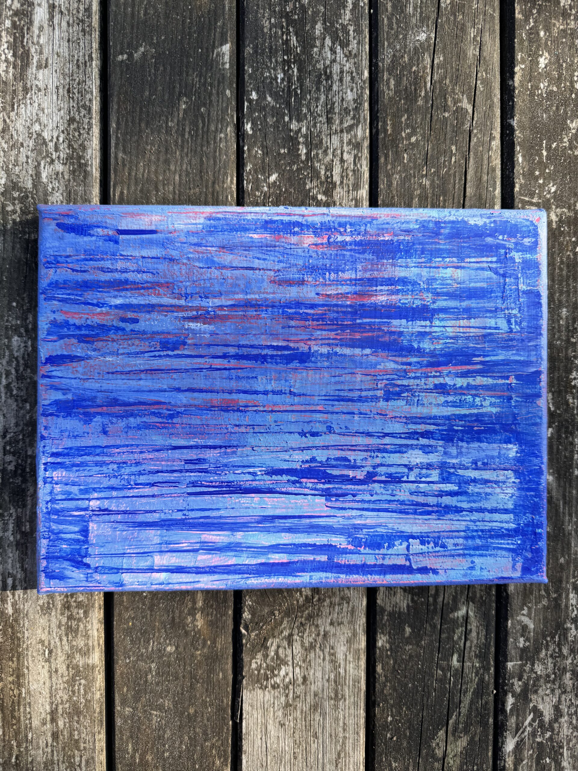 BLAU, SPACHTEL, ACRYL, LEINWAND, 20x15cm